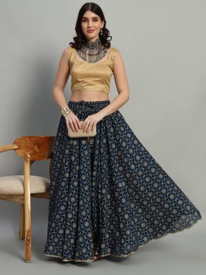 ZRI TEAL GOLD PRINTED SKIRT – IBS034