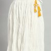 White solid flared maxi skirt, has an elasticated waistband with drawstring gotta lace closure, and a flared hem