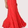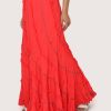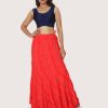 Embellished flared maxi Tiered skirt, has an elasticated waistband with drawstring closure & flared hem